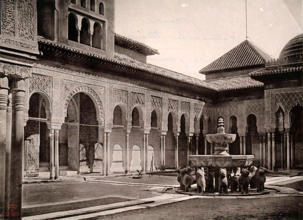 | dc.description.abstract | Vista del Patio de los Leones desde la esquina Suroeste, en el lado derecho la Fuente de los Leones con el añadido del "restaurador adornista" Rafael Contreras, al fondo el Templete de Levante, en el lado izquierdo galeria y entrada a la Sala de Dos Hermanas | es_ES |