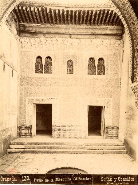 | Título: | "Granada. 123. Patio de la Mezquita (Alhambra). Señan y Gonzalez fotografos." |