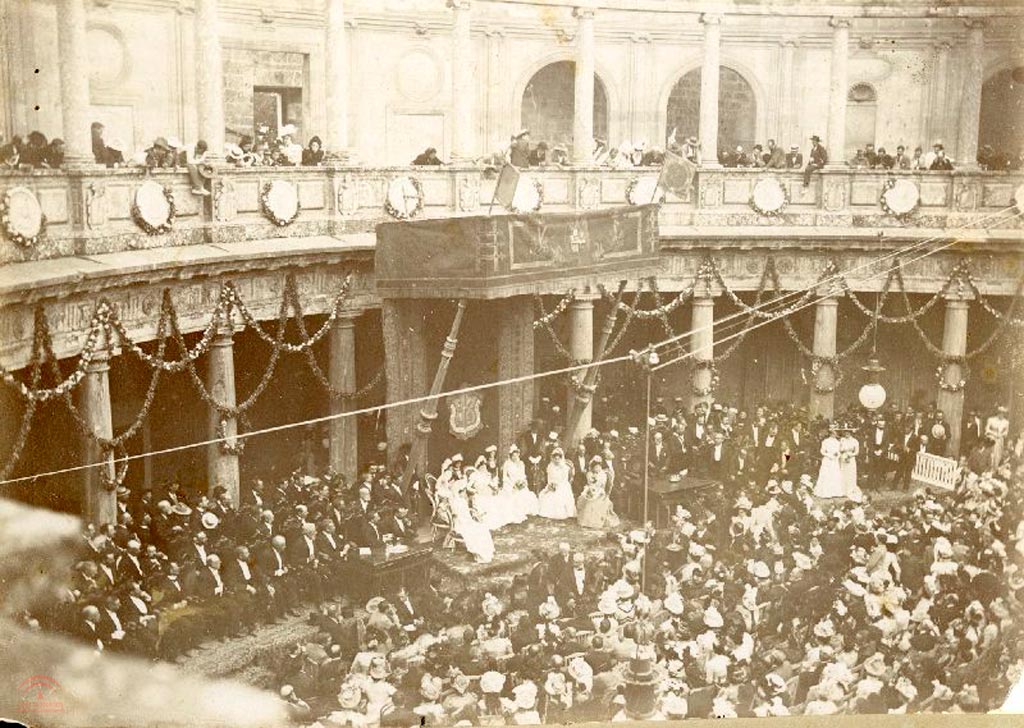 | Título: | [Acto cultural en el Palacio de Carlos V, iluminado mediante electricidad] |
