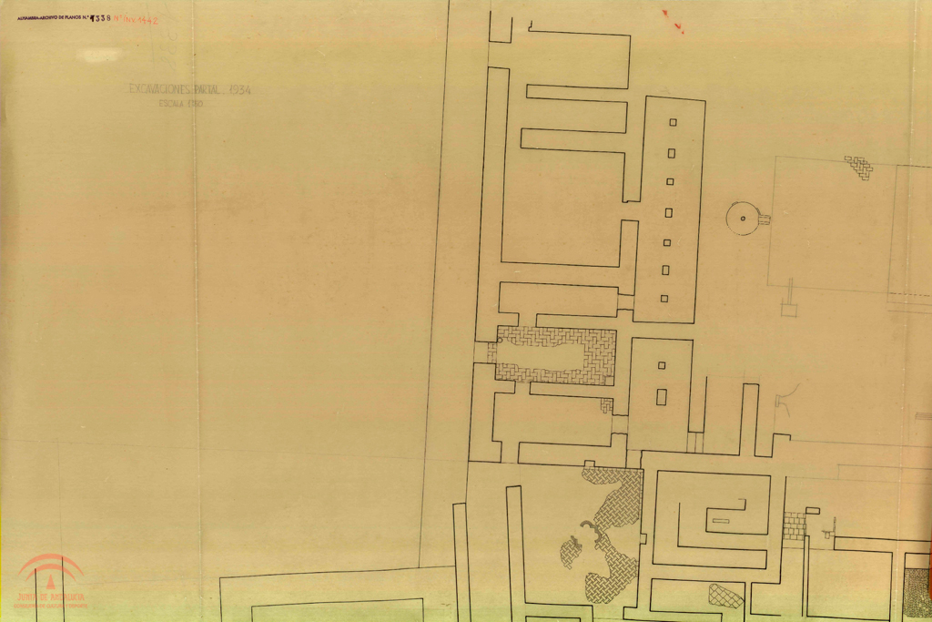 | Título: | Partal. Sector del ángulo Noroeste. Excavaciones del Palacio de Mondéjar. Planta |
