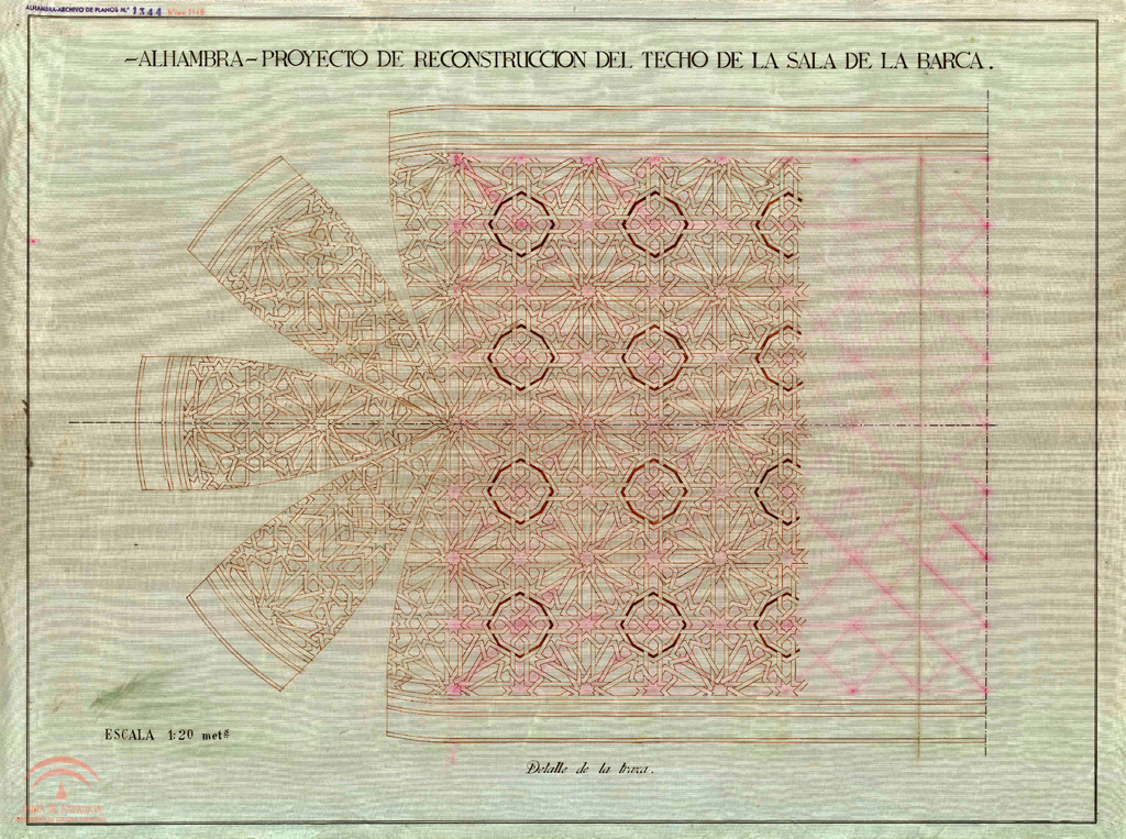| Título: | Alhambra. Sala de la Barca. Proyecto de reconstrucción del techo. Diseño de traza. Proyección horizontal del techo |