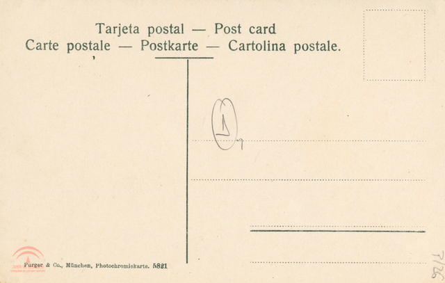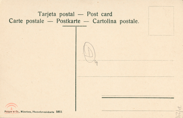 | Descripción: | B Tarjeta postal de 137x89mm, coloreada con tonos: azul, rojo, amarillo, verde y blanco. Photochromiekarte No. 5807 |