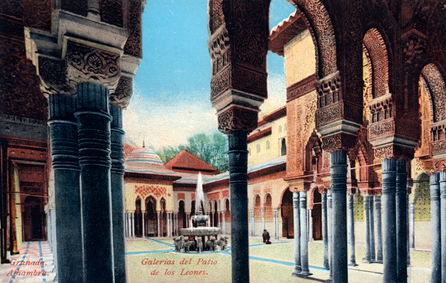 Granada. Alhambra. Patio de los Leones. Postal. |