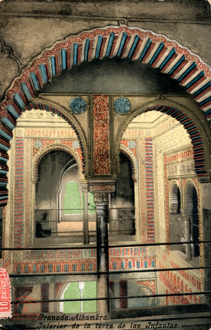 | Tema: | Granada. Alhambra. Interior de la torre de las Infantas. Pº de Recoletos. Madrid. García, María. Postal. |