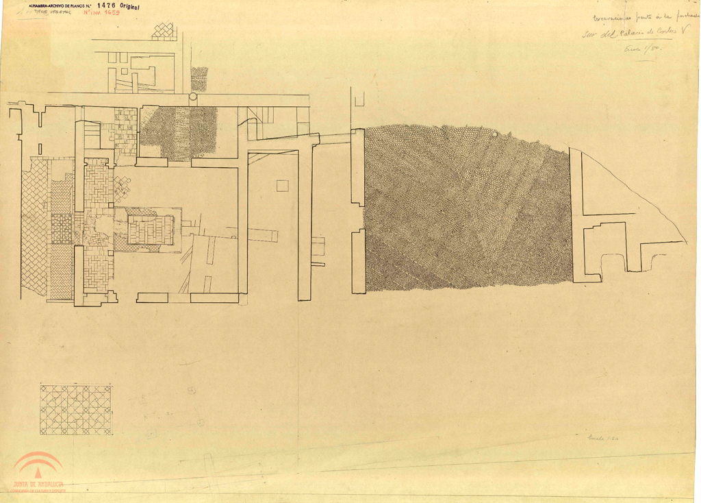 | Título: | Palacio de Carlos V. Excavaciones frente a la fachada Sur (casas árabes). Planta |