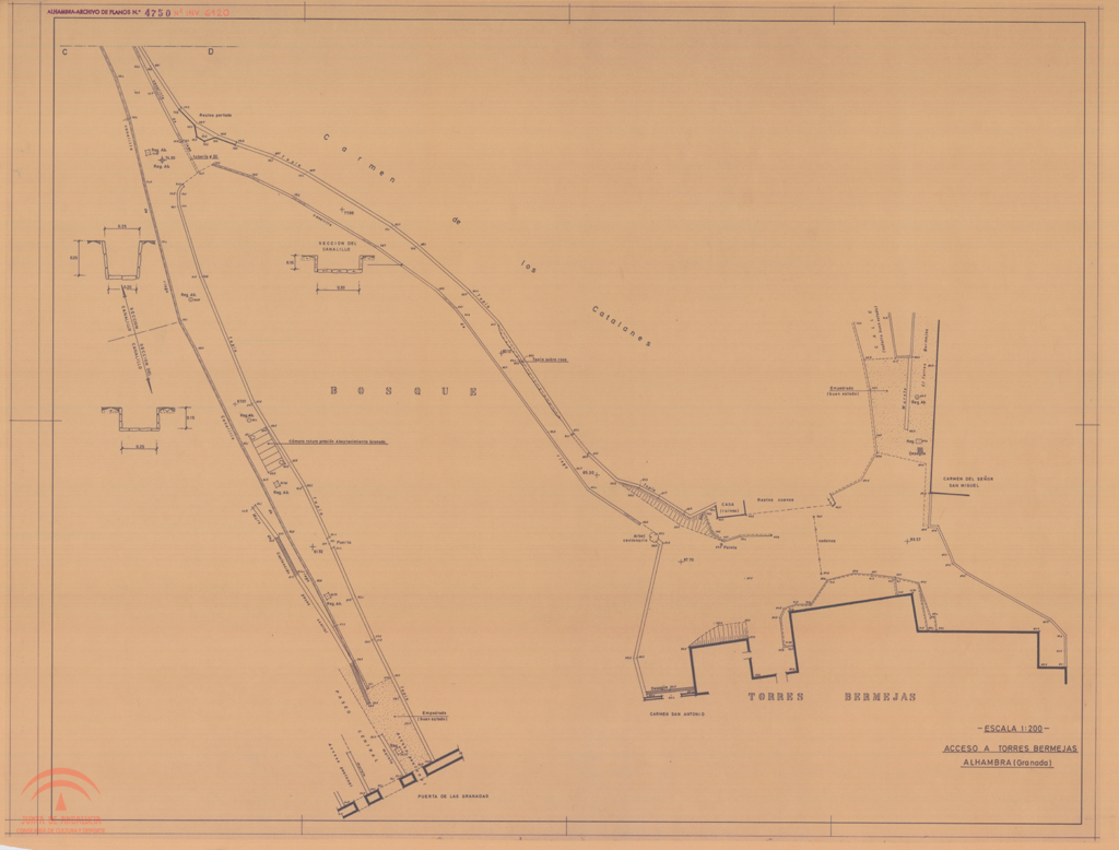 sector: 6.6.0.0. Numero de plano de la oficina técnica del servicio de conservación: 452, (Alhambra-archivo de planos Nº 452) Digitalizado |