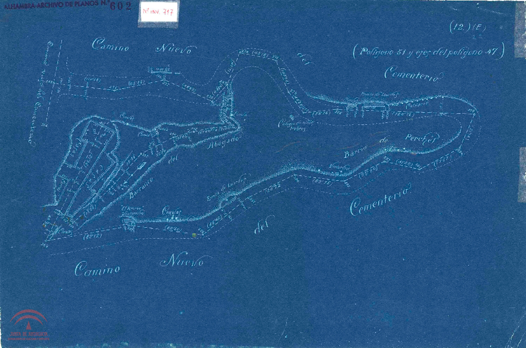 sector: 3 Poligonación Zona Este del Plano General de Granada Numero de plano de la oficina técnica del servicio de conservación: 602, (Alhambra-archivo de planos Nº 602) Digitalizado |