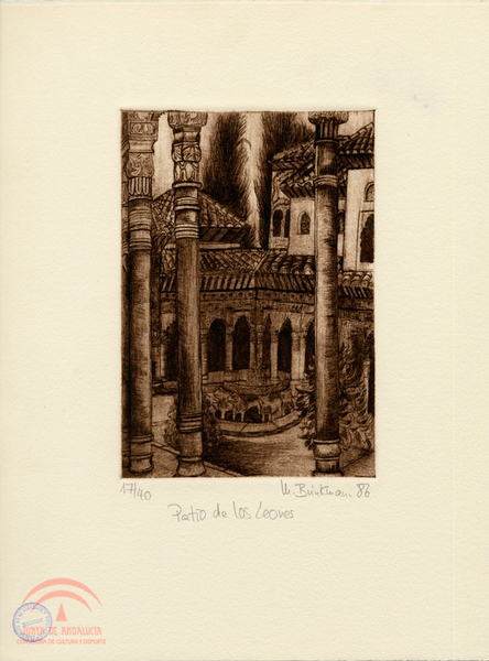 | Resumen: | Alhambra. Patio de los Leones de Mechthild Brinkmann. Grabado 17/40 |