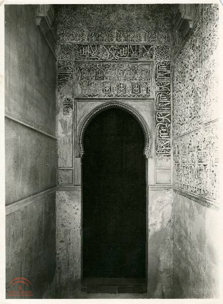 Puerta y arco de acceso a la escalera de subida a la parte alta de la Torre de Comares, descubierta en 1923, esta fotografía fue publicada en Cuadernos de la Alhambra