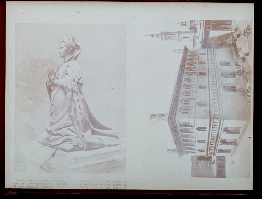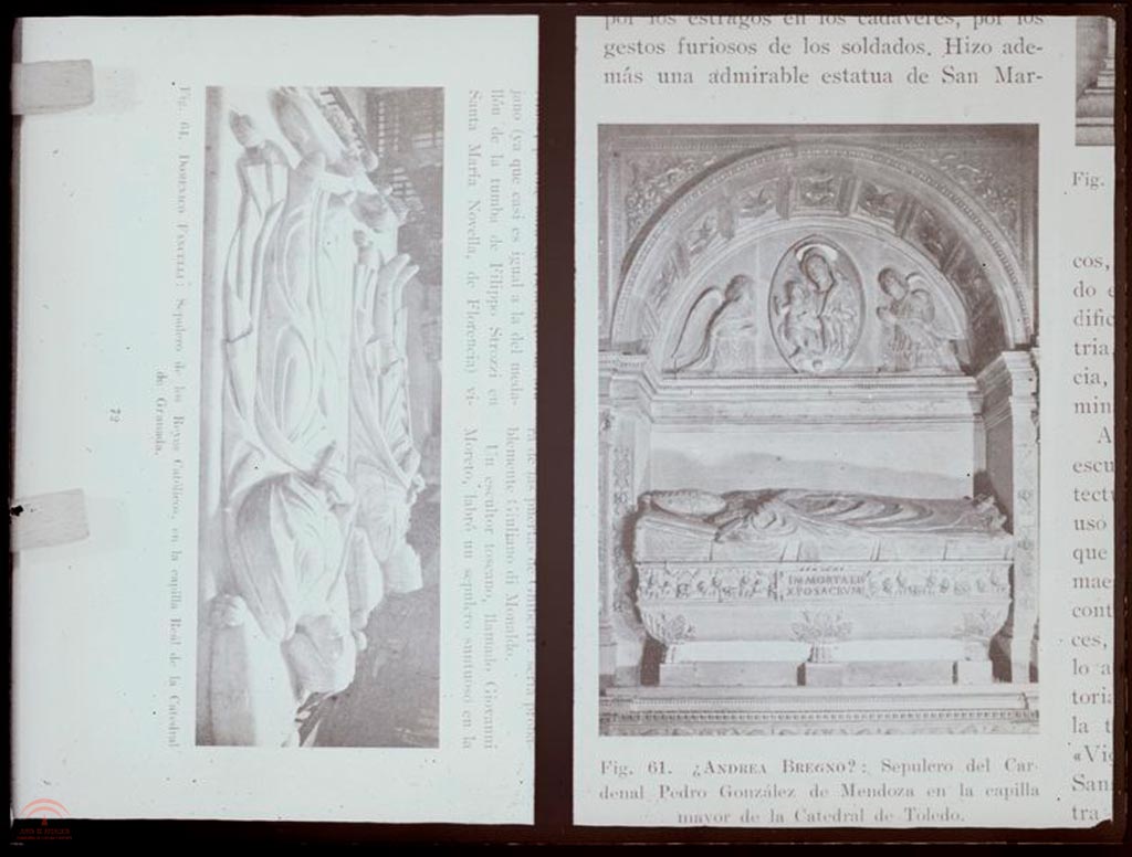 Aparecen dos láminas-fotografías, ambas horizontales. Cada imagen ocupa una mitad del soporte. La imagen del sepulcro es una vista lateral. Valca Universal (Ortocromática Antihalo)