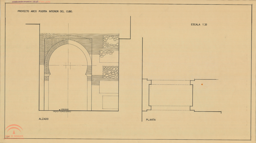 | Título: | Puerta interior del Cubo. Proyecto de arco. Planta y alzado |