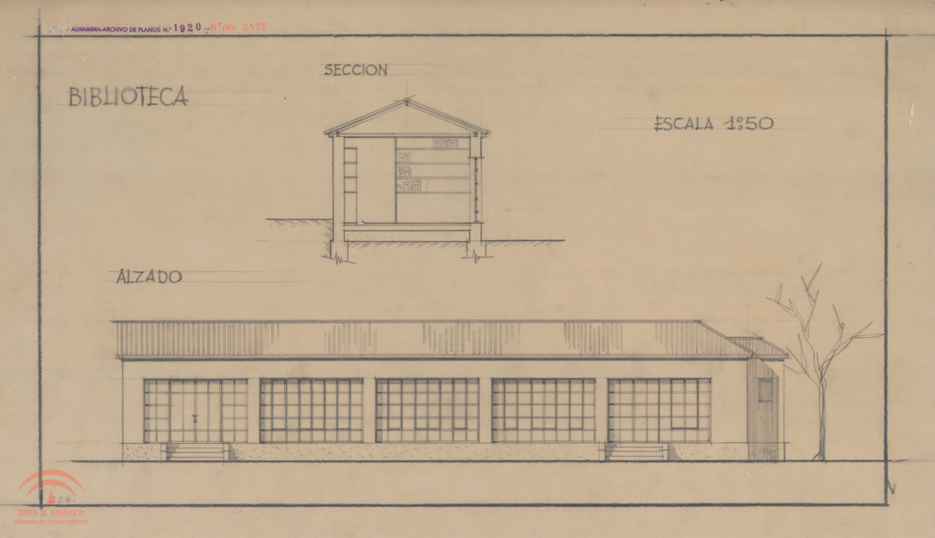 | Título: | Proyecto de Biblioteca en Baños del Polinario (de la Mezquita). Alzado y sección |