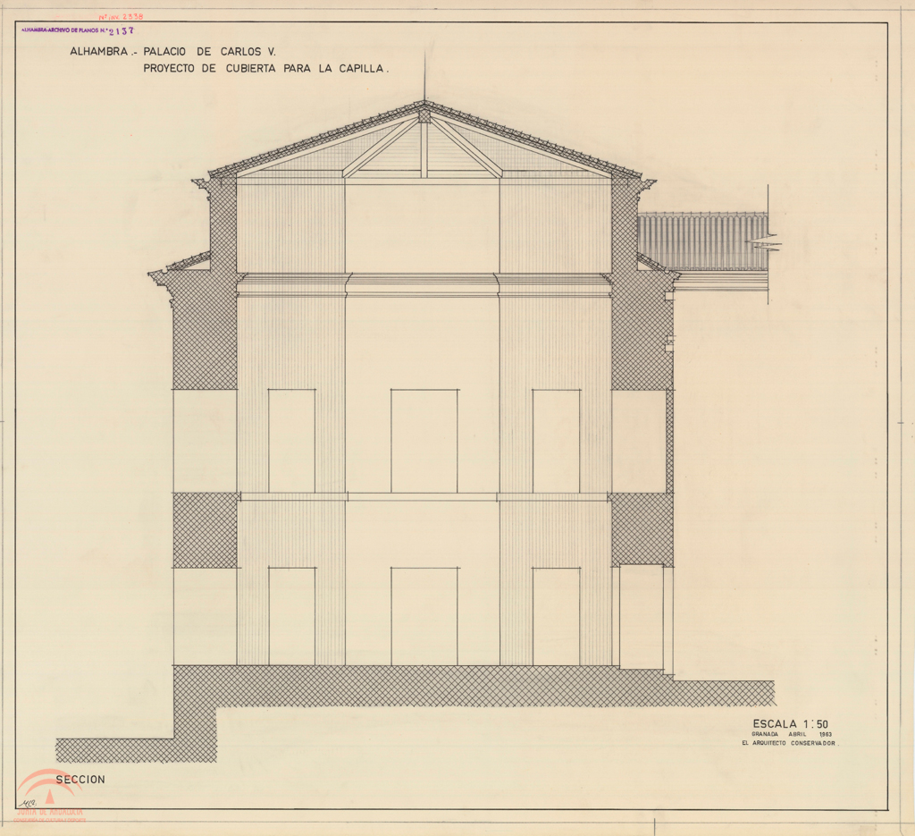 Título: Palacio de Carlos V. Proyecto de cubierta para la Capilla. Sección