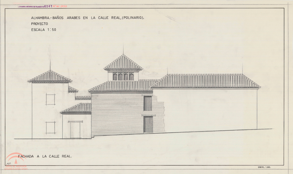 | Title: | Alhambra. Baños Árabes de la calle Real (Polinario o de la Mezquita). Proyecto. Fachada a calle Real |