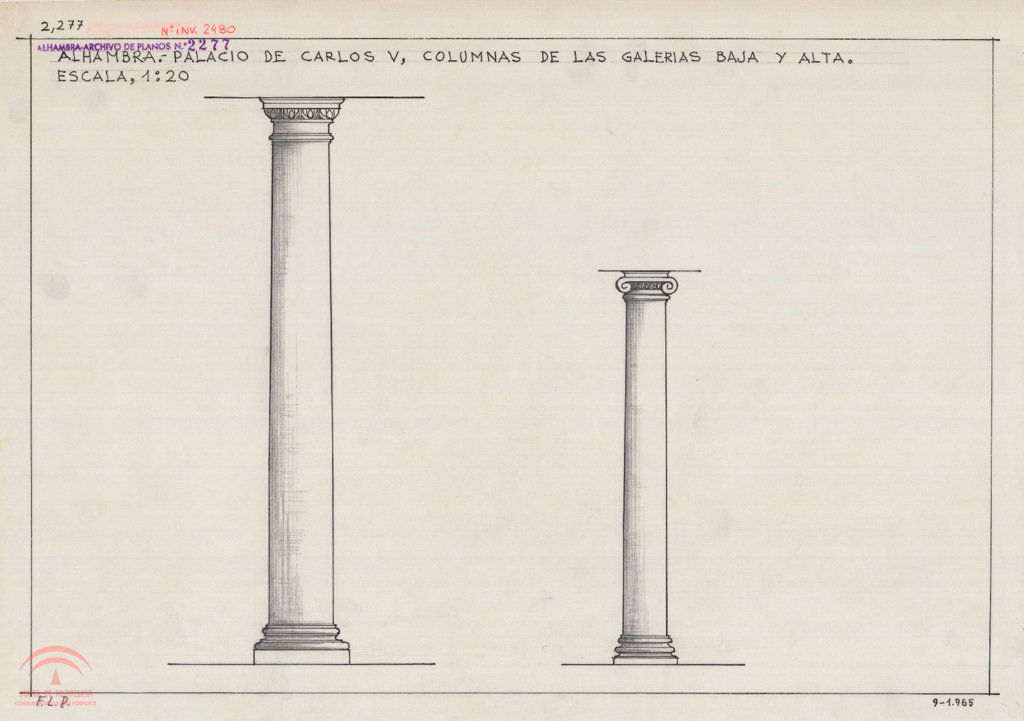 | Título: | Palacio de Carlos V. Columnas de las galerías baja y alta. Alzados |