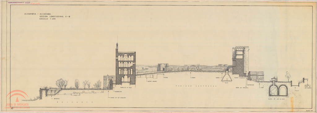 | Título: | Alhambra. Alcazaba. Sección longitudinal A-B |