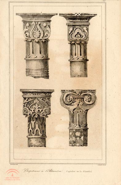 Título: "Chapiteaux à l'Alhambra. Capiteles en la Alhambra"
