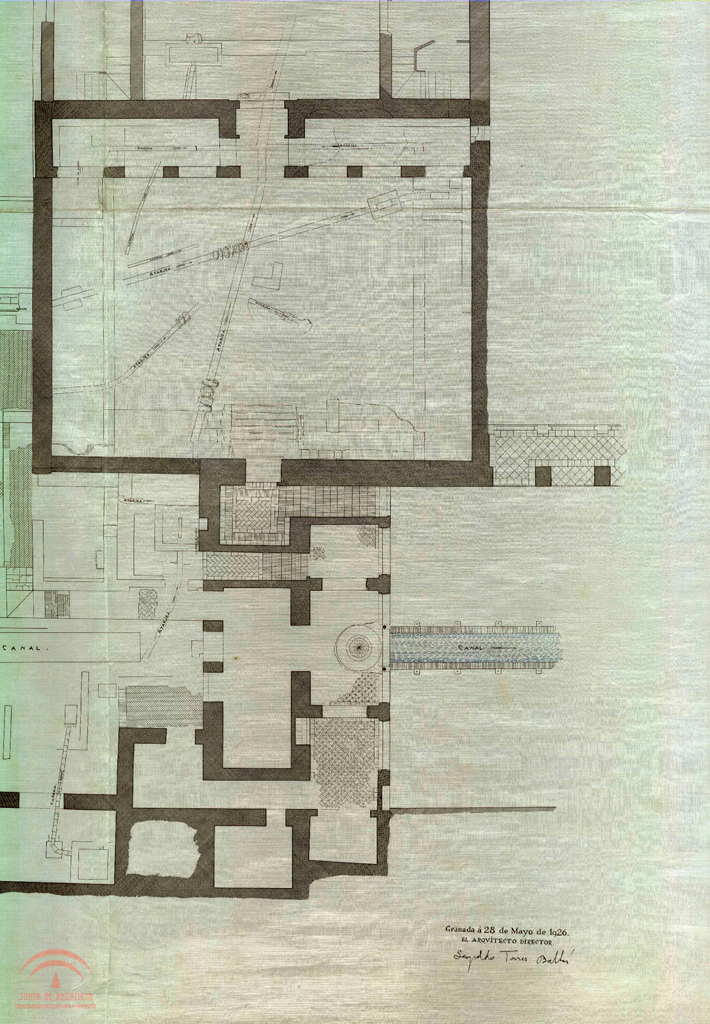 | Título: | Generalife. Plano de las construcciones de ingreso a Este antiguo (Sector Patio Polo). Planta |