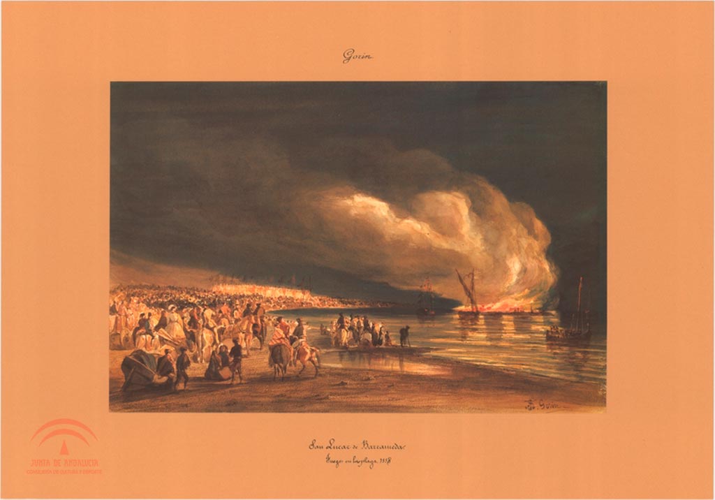 | Título: | San Lúcar de Barrameda. Fuegos en la playa. 1858 |