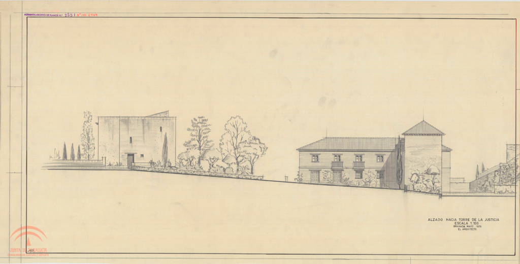 | Título: | Alhambra. Proyecto de nuevas taquillas. Alzado hacia Torre de la Justicia |