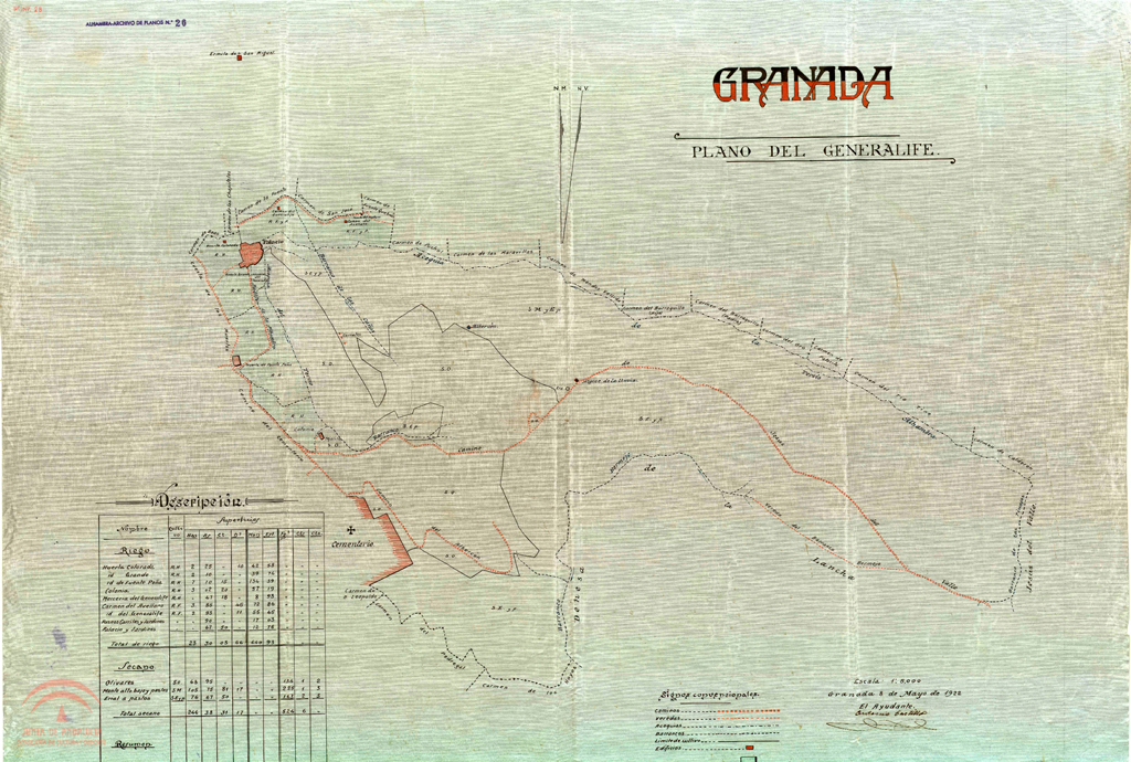 Título: "Granada. Plano del Generalife"