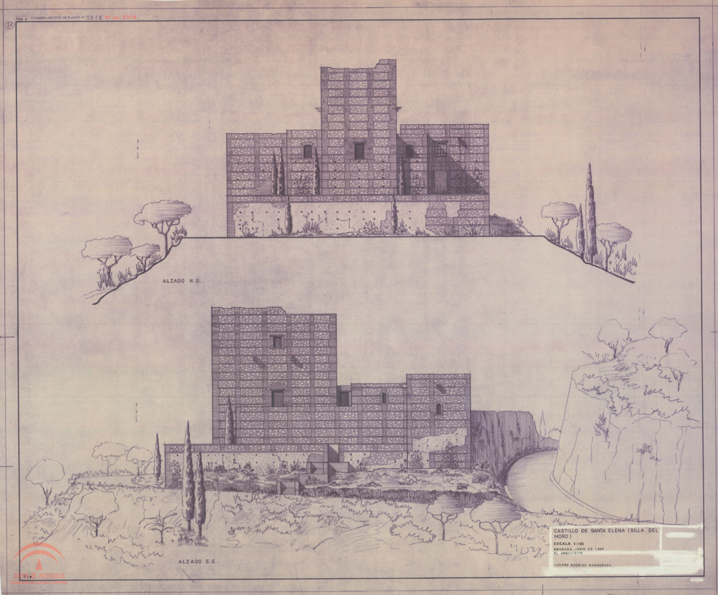 | Título: | Silla del Moro. Proyecto de restaurante. Alzados Noroeste y Sureste. Hoja nº 4 |