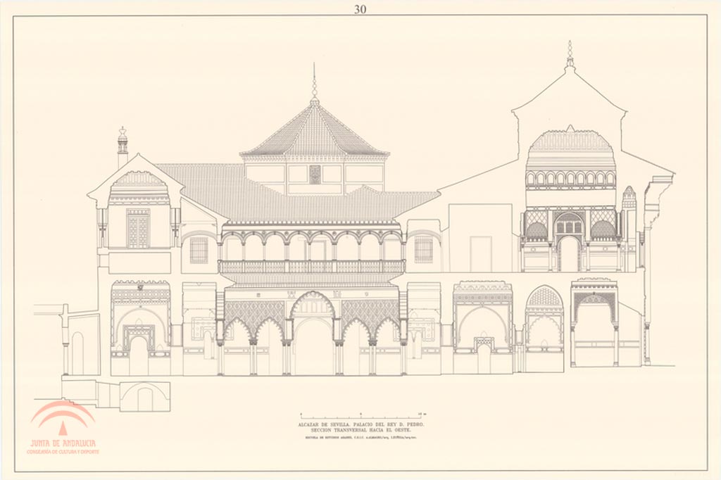 | Título: | Alcázar de Sevilla. Palacio del Rey Don Pedro. Sección transversal hacia el O (nº 30) |