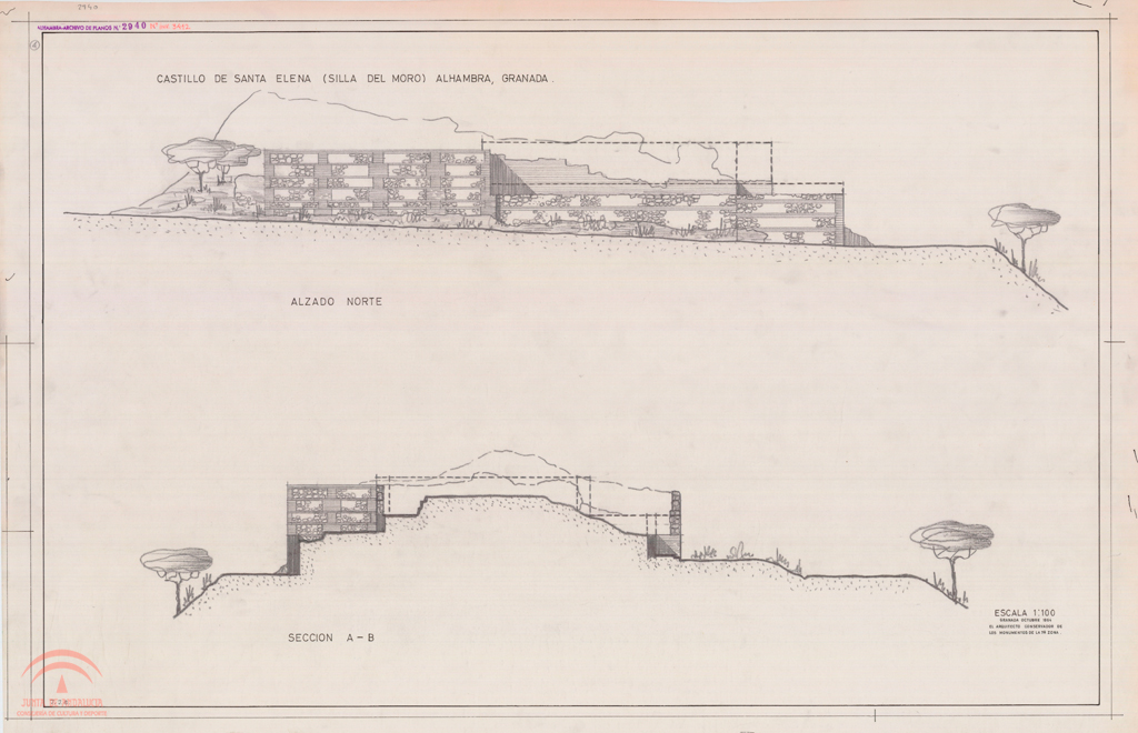 | Título: | Silla del Moro. Alzado Norte y sección A-B antes de la restauración |