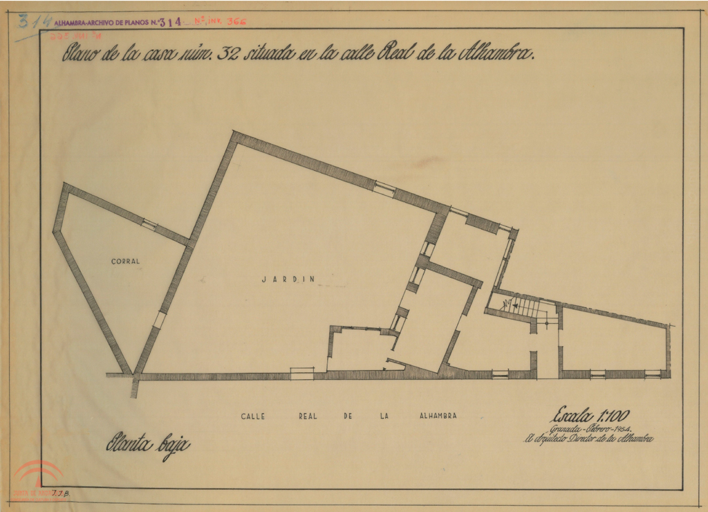 | Título: | "Plano de la casa núm. 32 situada en la calle Real de la Alhambra" |