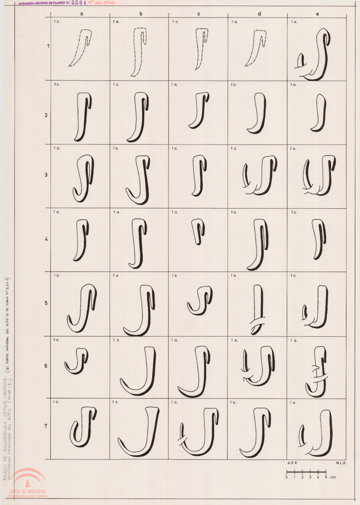 | Título: | Játiva (Valencia). Palacio de Pinohermoso. Inscripción del alfiz de la puerta de doble arco. Alifato. Hoja 1 |
