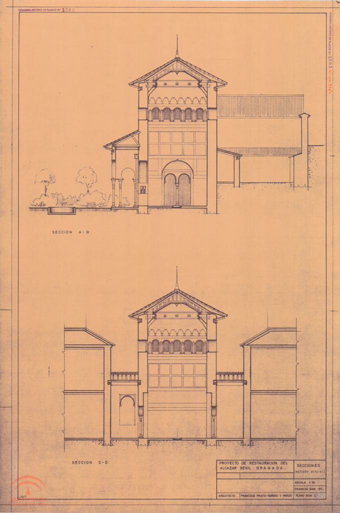 Título: Granada. Alcázar Genil. Proyecto de restauración. Secciones. Estado actual. Hoja 4