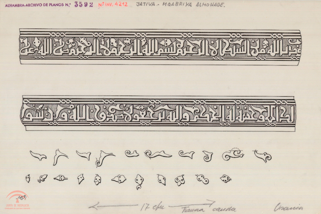 | Título: | Játiva (Valencia). Maqabriya almohade. Inscripción cúfica y desglose de flora |