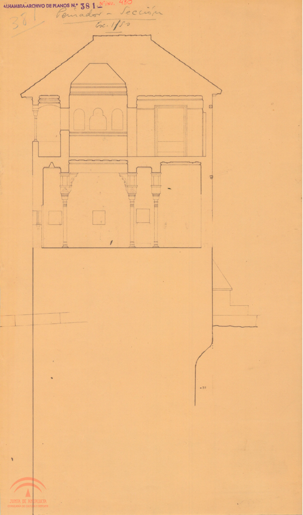 sector: 2.3.0.0. Numero de plano de la oficina técnica del servicio de conservación: 381, (Alhambra-archivo de planos Nº 381) Digitalizado |