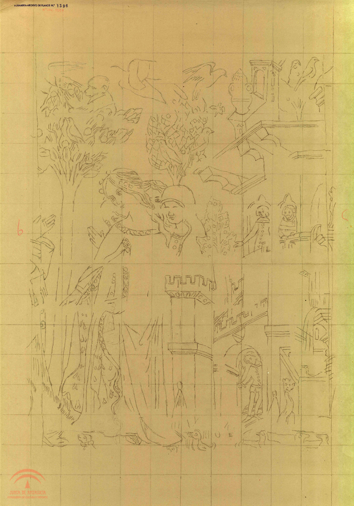 | Título: | Calcos de las pinturas del techo de la Sala de los Reyes (reducción). Bóveda Norte ("Fuentes"). Hoja G |