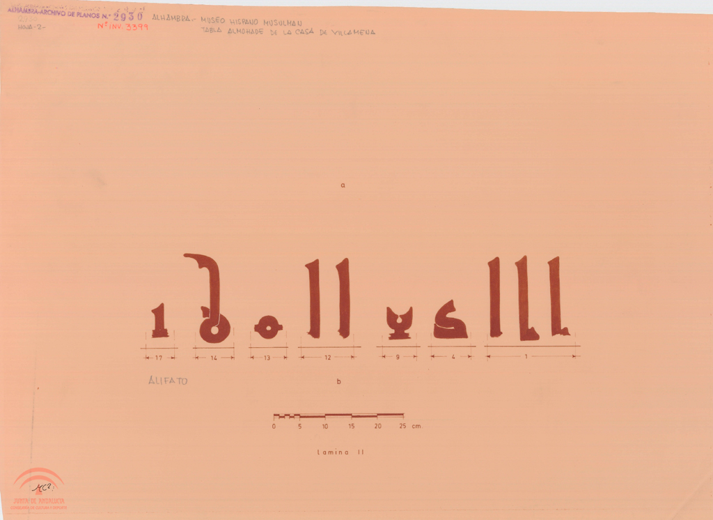 | Title: | Alhambra. Museo Hispano-Musulmán. Tabla almohade procedente de la Casa de Villamena. Alifato. Hoja nº 2 |