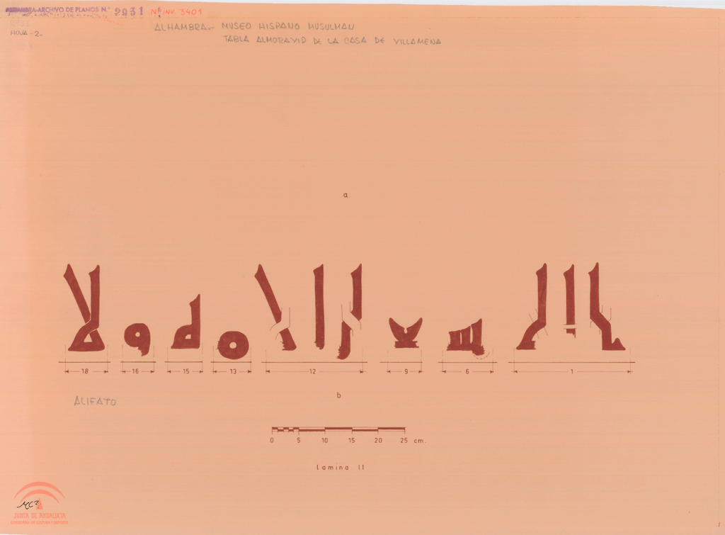 | Título: | Alhambra. Museo Hispano-Musulmán. Tabla almorávide procedente de la Casa de Villamena. Alifato. Hoja nº 2 |