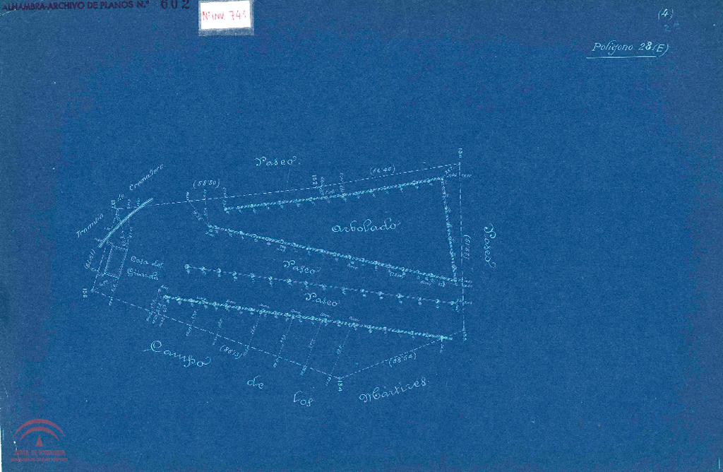 sector: 99 Poligonación Zona Este del Plano General de Granada Numero de plano de la oficina técnica del servicio de conservación: 602, (Alhambra-archivo de planos Nº 602) Digitalizado |