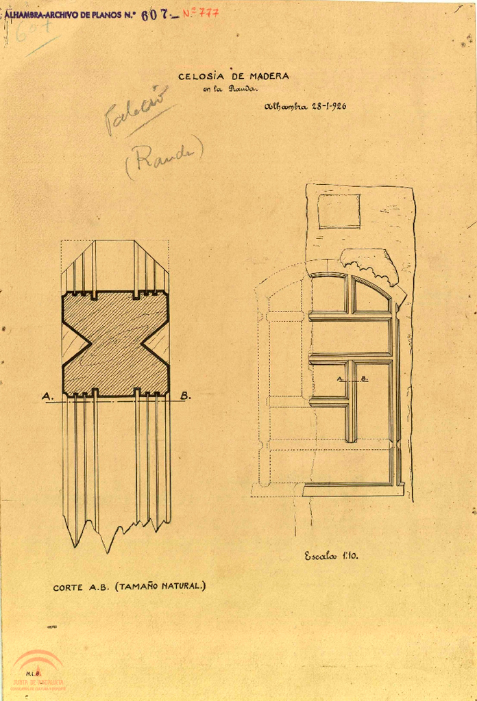 | Resumen: | Rauda. Celosía de madera. Alzado y sección A-B |