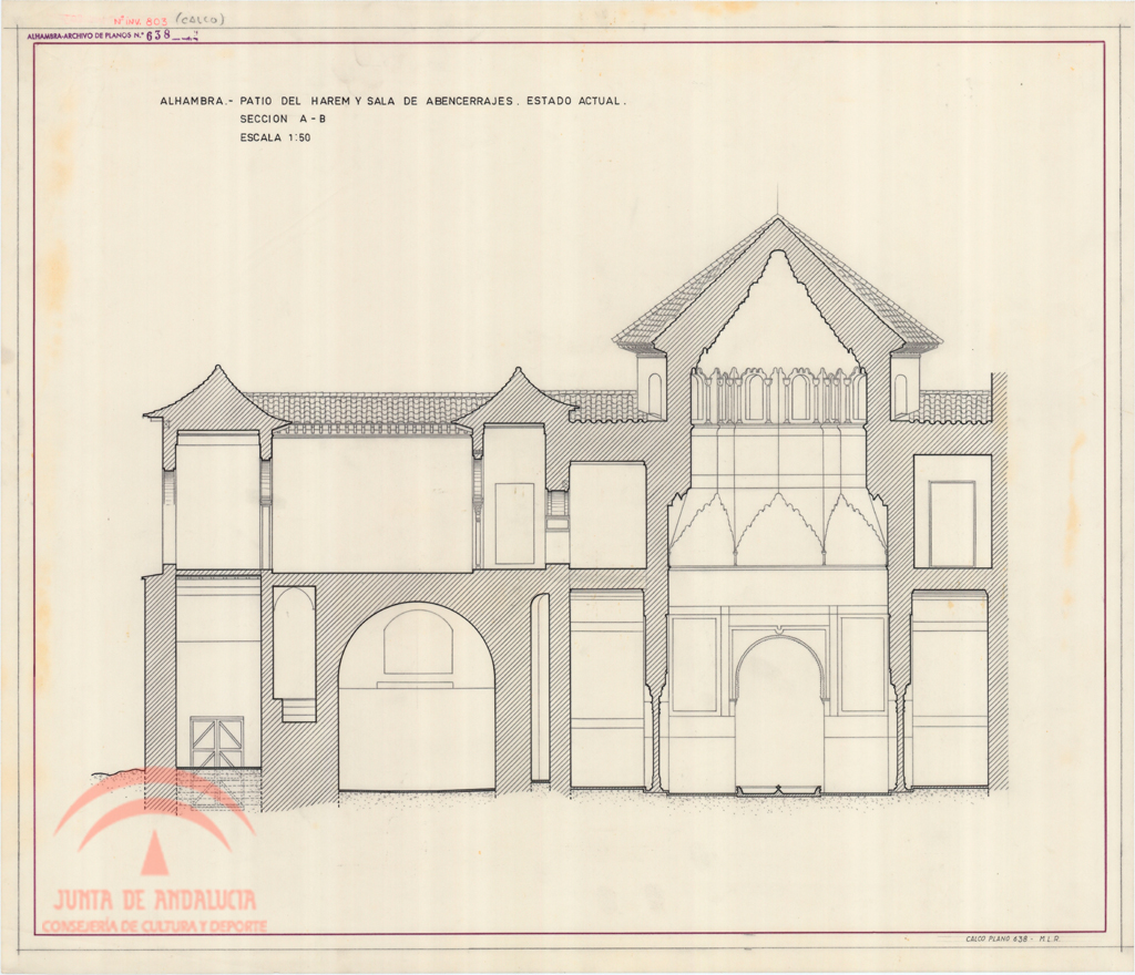 | Título: | "Alhambra. Patio del Harem y Sala de Abencerrajes. Estado actual. Sección A-B" |