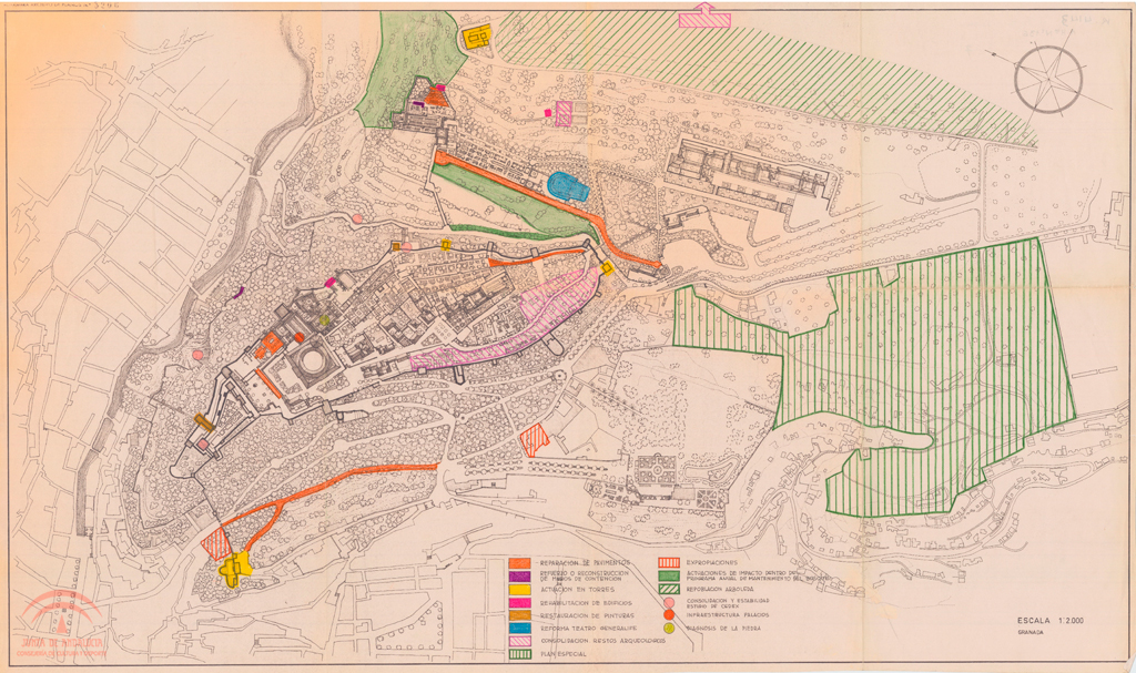 | dc.title | Alhambra Generalife y alrededores. Planta con cubiertas del Conjunto Monumental reseñando actuaciones varias | es_ES |