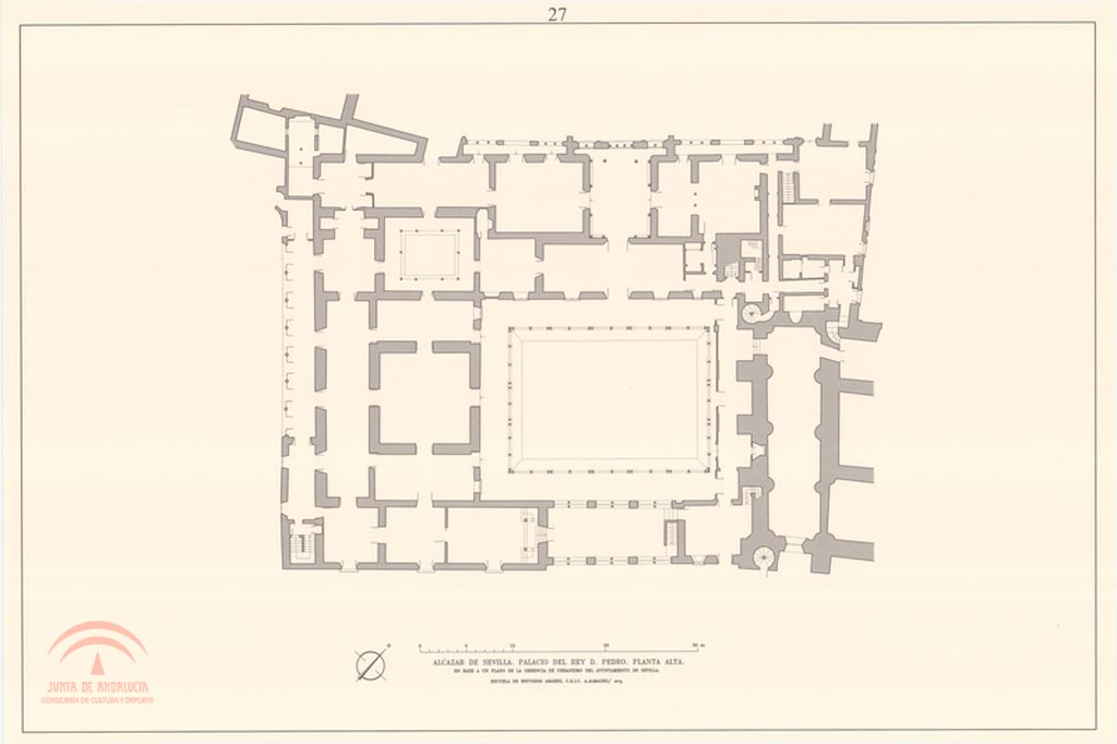 Alcázar de Sevilla. Palacio del Rey Don Pedro. Planta alta (en base a un plano de la Gerencia de Urbanismo del Ayuntamiento de Sevilla) (nº 27)