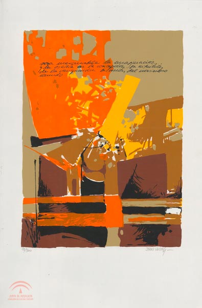 | Descripción: | Serigrafía a 6 tintas;34'1 x 25'2 cm en hoja 49'4 x 32'7 cm;Cartulina;Obra gráfica original Signatura antigua de base de datos de Catalogo Mapas Dibujos del Archivo Historico Nº: 535 Recortes de prensa enviados por D. Francisco Vargas (Barcelona, 15-5-94). Digitalizado |