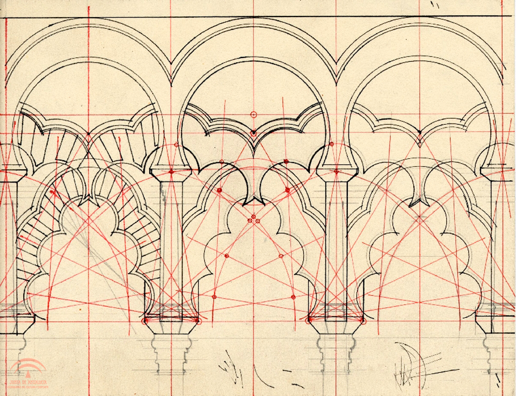 | Título: | Mezquita de Córdoba. Arcos cruzados frente al Mihrab. Traza geométrica |