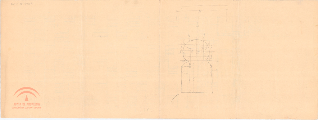 | Título: | [Granada. Iglesia de San José]. Sillería. Despiece de un frente (en c/ San José). Croquis de arco en reverso |
