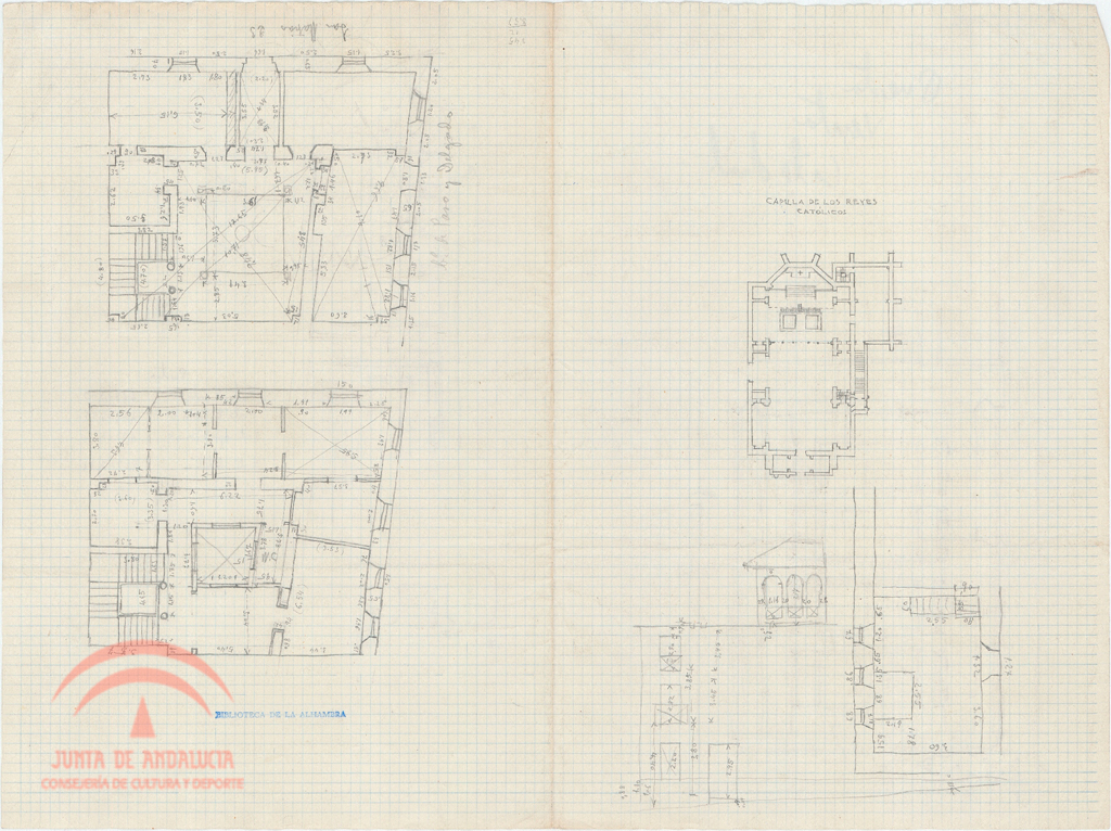 | Título: | Granada y Alhambra. Varios croquis en anverso y reverso: casa entre c/ San Matías nº 23 y Paso y Delgado Capilla Real puertas del palacio de Carlos V Catedral y San Francisco |
