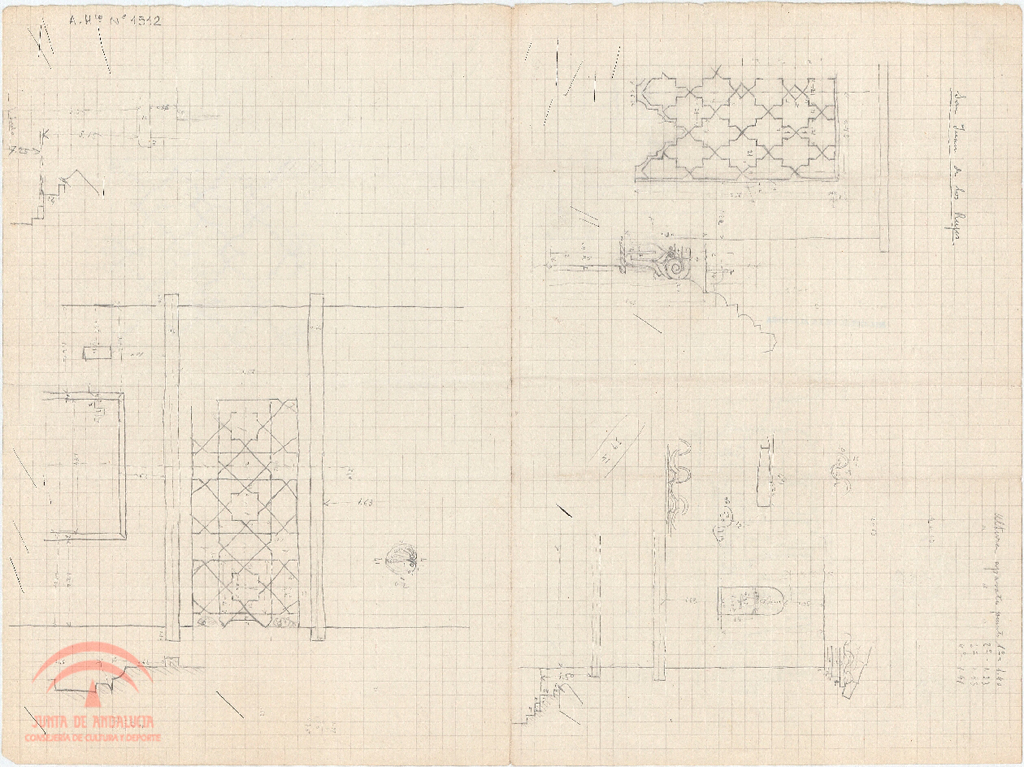 | Título: | Granada. Varios croquis en anverso y reverso: torre de San Juan de los Reyes decoración |