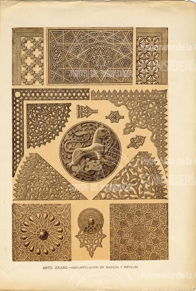 | Título: | Ilustración. Arte árabe: ornamentos de metal y de madera (celosías; adornos; aplicaciones...) |
