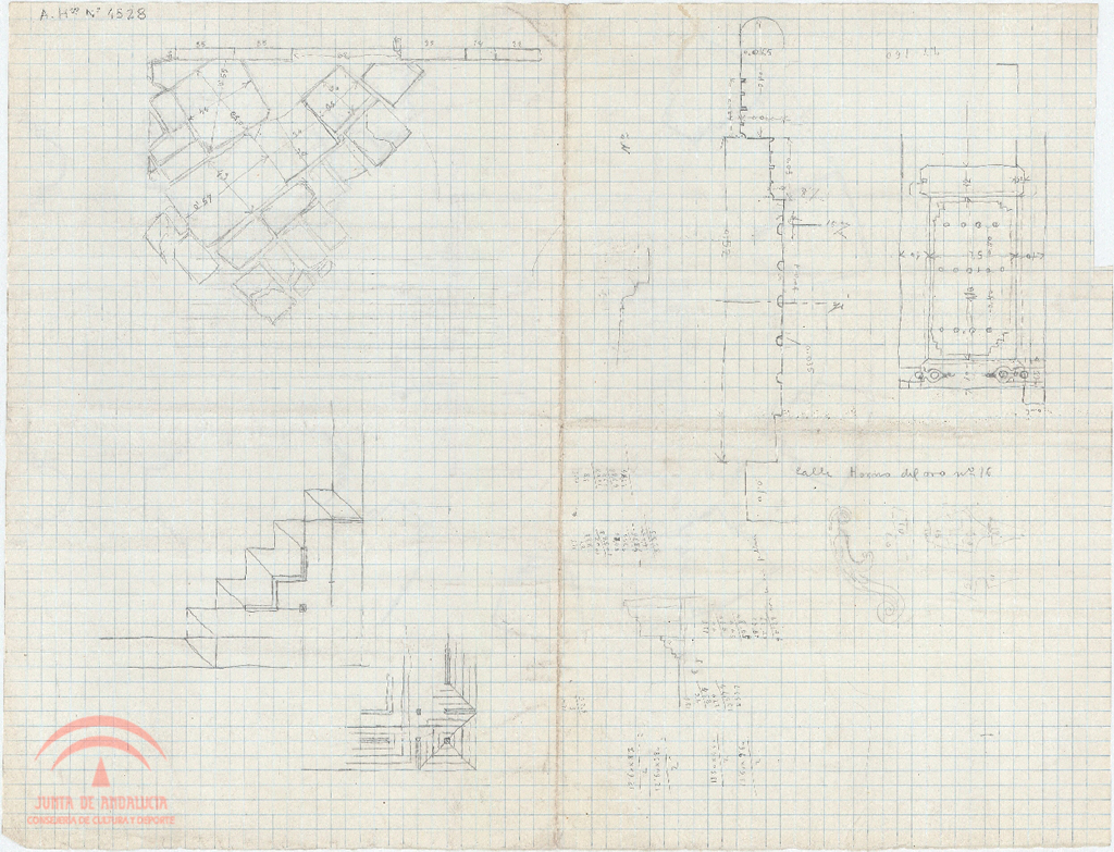 | Título: | Granada. Varios croquis en anverso y reverso: Catedral de Granada solerías carpintería en casa de c/ Horno del Oro nº 16 |