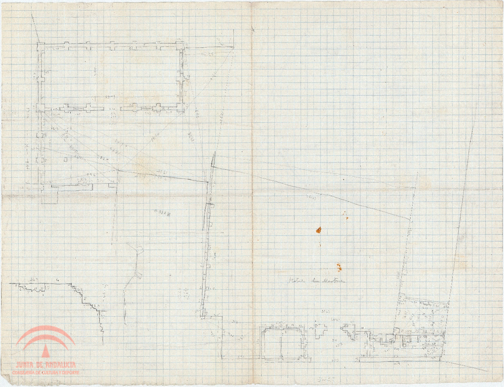 | Título: | Granada. Varios croquis en anverso y reverso: sector de Los Mártires y "Museo", Corral del Carbón, surtidor |