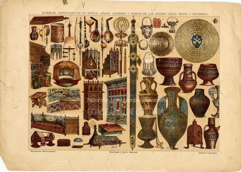 | Título: | Ilustración. Muebles; instrumentos de música; armas;" adornos y vasijas de los árabes (Edad Media y Moderna) |